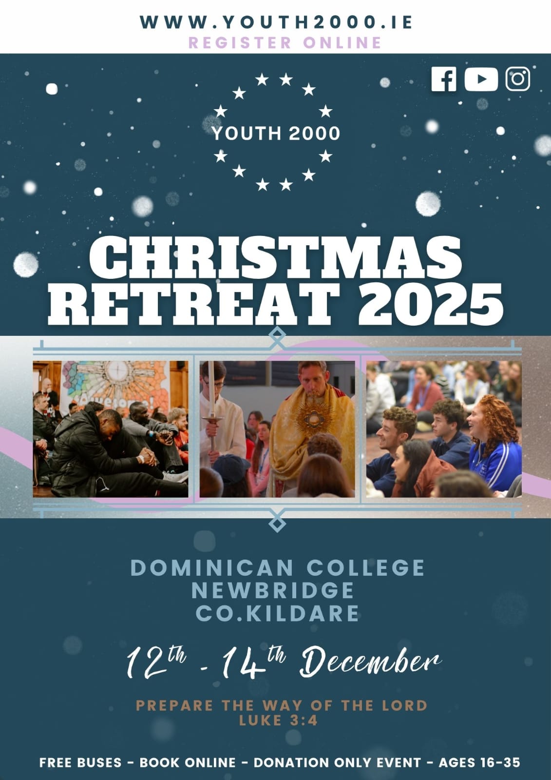 We are so looking forward to seeing you! Follow us on social media @youth2000ireland and sign up to our newsletter HERE to stay up to date with announcements about the retreat as they are released.